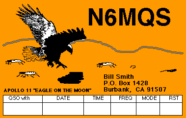 NEW Online preview of your qsl card. Click here QSL cards are available in quantities of 100 cards per style. Each 100 cards are printed with black ink on five standard colors of card stock. This will give you 20 cards in each color. QSL CARD Pictured below are enhansed Business card size QSL cards are also available. These are great to hand out when you have a face to face contact. The popular name for these cards is "EYEBALL QSL CARDS". They are printed using the same artwork and paper card stock as the standard QSL Cards. The first 100 cards are $19.95. Each additional 100 cards (of the same style) are $17.95 100 Business card size cards are $ 14.95 (eyeball cards). Delivery time is 1-2 weeks. The cards will be shipped via US mail (which takes approximatelly 4-5 days). The shipping charge is $6.00